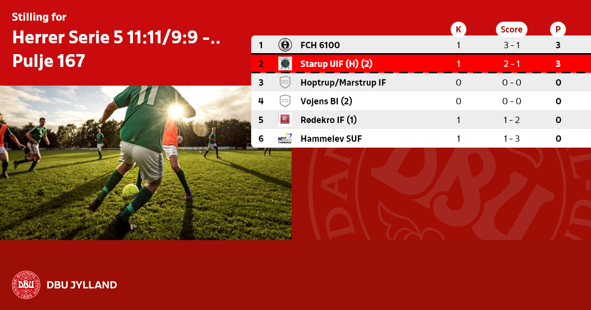 | 5 |  Rødekro IF (1) | 1 | 0 | |